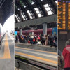 Milano Merkez İstasyonu''ndaki peronlara sendikalar flamalarını astı.