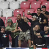 Gazze'ye yönelik saldırılarını sürdüren İsrail'i protesto eden İtalyan taraftarlar, karşılaşma öncesi İsrail ulusal marşı sırasında sahaya sırtlarını döndü.