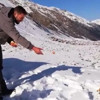 DHA'nın haberine göre, Çamlıhemşin ilçesinde Yukarı Kavrun Yaylası Kültür ve Turizm Derneği Başkanı Tayfun Bekar ve arkadaşları karla kaplı yaylada gezintiye çıktı.