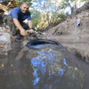İkili balıkları kurtarmak için harekete geçti. Balıkları file kepçe ile alıp, su dolu bir varile koyan 2 arkadaş , ardından da kanyonda başka bir su kaynağının içerisine bıraktı.