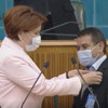 Ayrıca Meral Akşener, ünlü halk ozanı Aşık Mahzuni Şerif'in oğlu Emrah Mahsun'a da İYİ Parti rozeti taktı. Rozeti takıldıktan sonra Atatürk’e teşekkür eden Emrah Mahsun, kürsüden şu ifadeleri kullandı: