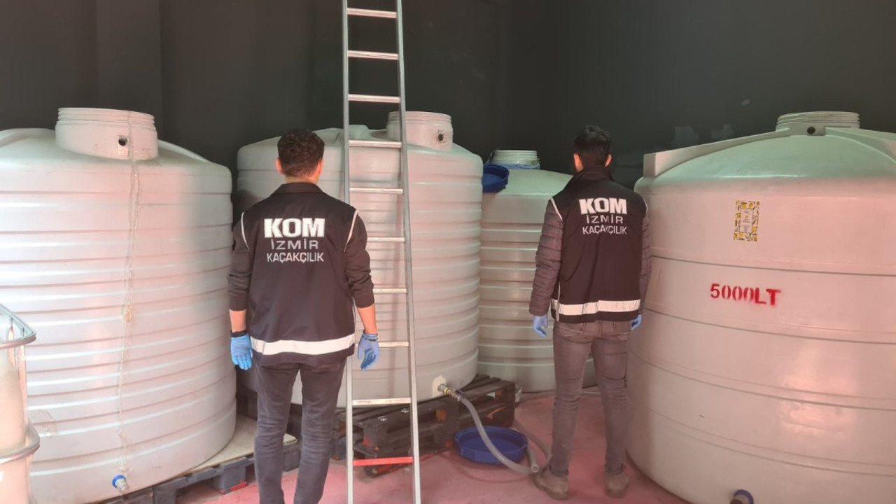 İzmir, Aydın ve Manisa’da gerçekleştirilen operasyonlarda, insan sağlığı için tehlikeli ve sağlıksız şartlarda üretilen etil alkolün saklandığı 3 ev, 3 iş yeri, 3 depo ve 4 araçta aramalar yapıldı. Yapılan aramalarda, 15 bin litre etil alkol, 4 damıtma kazanı, 2 dolum makinesi, soğutma fanı, folyo kapama makinesi, alkol ölçer, transfer pompası, 5 bin 250 bidon kapağı, 1873 sahte etiket, 1280 adet 1 litrelik şişe, 200 adet 5 litrelik bidon ve 200 adet içki aroması bulundu.