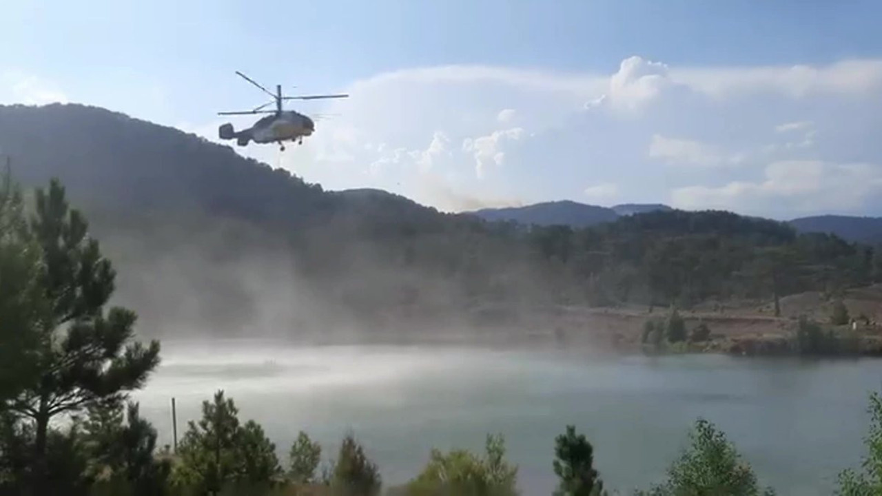 Havanın kararmasıyla ara verilen havadan müdahale, günün ilk ışıklarıyla birlikte helikopterle yeniden başladı.