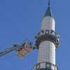 Gelen itfaiye ekipleri ise yangın merdiveniyle minareye çıkıp, düşme ihtimali olan hoparlör ile beton parçalarını yerinden söktü.