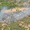 Henüz çıkış nedeni belirlenemeyen yangında, alevlerin tarım arazilerine sıçramaması için havadan ve karadan müdahale sürüyor.