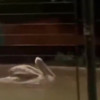 Yağış sonrası sular altında kalan İzmir sokaklarında yüzen pelikanın videosu gündem oldu