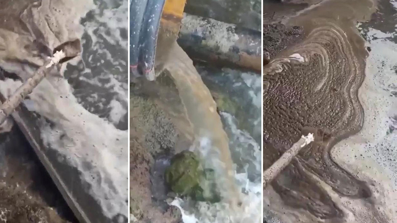 Atık suların döküldüğü bölgede renk değişimi yaşanırken, bazı noktalar ise köpürdü.