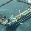 Belediye ekipleri, kirliliğin denizde yayılmasını önlemek için gemi çevresine bariyerler çekerek önlem aldı. (AA)