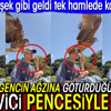 Japon gencin ağzına götürdüğü sandviçi pençesiyle çaldı! Fişek gibi geldi tek hamlede kaptı