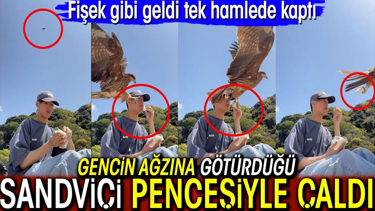 Japonya’da çekildiği iddia edilen bir sosyal medyada paylaşılan videoda, bir gencin yediği sandviçi bir şahin pençesiyle çaldığı görülüyor. O anlar saniye saniye cep telefonuyla kaydedildi.