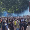 Ülker Stadı'nın önünü tıklım tıklım eden taraftarlar, meşaleler ve marşlarla stada doğru yürüdü.