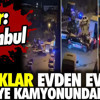 Arnavutköy’de bir ara sokakta mola verdiği sırada yakalanan Sercan D. ve 19 kaçak göçmenin yakalanma anı cep telefonu kamerası tarafından kaydedildi.