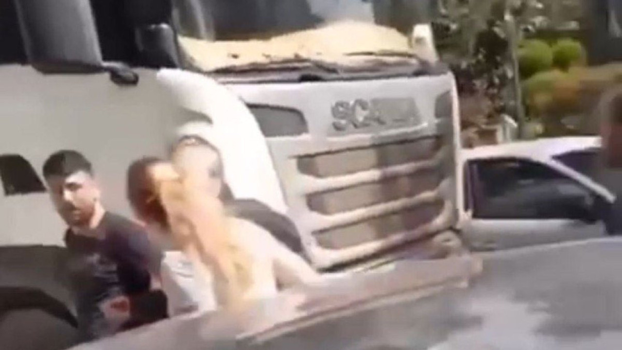 Bu sırada inşaat alanından çıkarak sokağa girmeye çalışan 2 hafriyat kamyonunun şoförleri, iddiaya göre dönüş yapamadıkları gerekçesiyle uzun süre kornaya bastı.