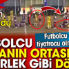 Hakem, futbolcuyu iterek uzaklaştırmak istedi ve futbolcu yere düşüp taklalar attı.