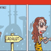 Mizah ustası Emre Ulaş çizdiği karikatürde, adalete doğru koşan kadın resmediliyor. Kadının gözündeki morluk dikkat çekerken, kendisine sığındığı adalet heykelinin dövülmüş, yaralı ve bitap haline şahit olunca kadının şaşırdığı görülüyor.