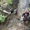 8 çocuk annesi Hanife Kartal (50), sabahın erken saatlerinde uyanıp yaylaya gittiklerini belirterek, "Her yıl bu zamanlarda yaylaya çıkıyoruz. Burada küçükbaşlarımızın süt sağımını yapıyoruz. Peynir, yoğurt, tereyağını yapıyoruz. Hem ev için yapıyoruz hem de süt ve ürünlerini satıp çocuklarımızın eğitim masraflarını ve ev ihtiyaçlarını karşılıyoruz. Her gün dağlık ve engebeli yolları geçip koyunlarımızı sağlamaya gidiyoruz. Zor ama yıllardır böyle. Koyunlarımızın bulunduğu alanda 500 metrelik yol engebeli olduğu için kendi imkanlarımızla odun, tahta parçaları ve elektrik telleriyle uçuruma düşmemek için patika yol yaptık. Tellere tutunarak zorlu kısmını tek sıra halinde geçiyoruz. Çok tehlikeli. En ufak bir harekette buradan dereye düşebiliriz. Dönüş yolculuğumuzda erkekler yardım ediyor. Zor bir yol ve yetkililerden bu yolun bu kısmının yapılmasını istiyoruz" dedi.