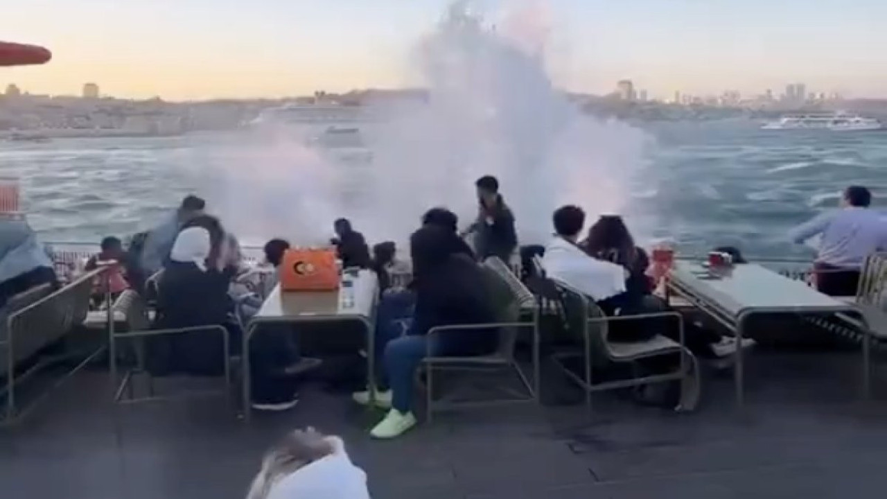 İstanbul'un deniz kenarındaki bölgelerinden birinde, hava koşullarının etkisiyle yükselen dalgalardan dolayı deniz kenarındaki insanlar sürpriz bir durumla karşılaştı. Kıyıya vuran dalgalar nedeniyle beklenmedik bir şekilde ıslanan insanlar, o anları kaydeden bir vatandaşın videosuyla gündeme geldi.