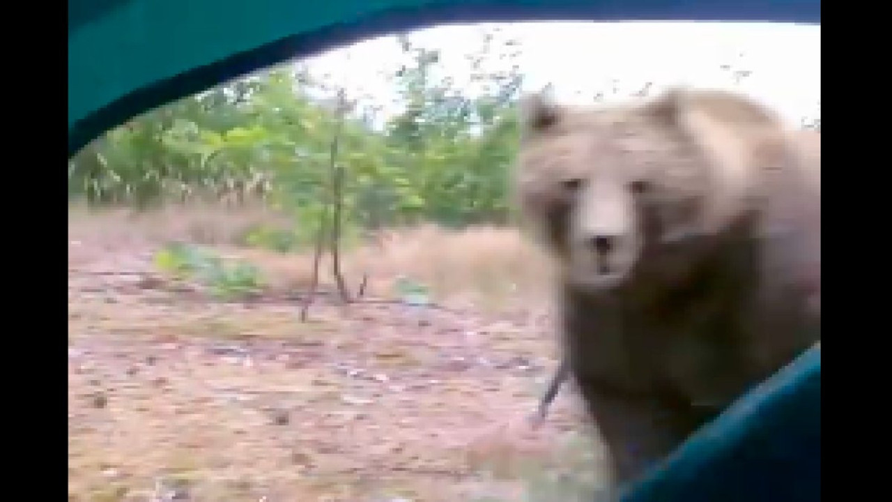 Kampa giden bir kişi sabah uyanıp çadırın fermuarını açınca ayıyla yüz yüze geldi.