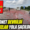 Konya'nın Kulu ilçesinde karpuz yüklü kamyonet devrildi. Kaza sonucu 2 kişi yaralanırken, yol kamyonetten saçılan karpuzlardan dolayı kırmızıya boyandı.