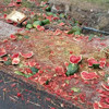 Sürücünün yara almadan atlattığı kazada kamyonetin taşıdığı tonlarca ağırlığındaki karpuzlar yola saçıldı.