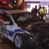 Sürücü önce cadde üzerinde gelen polis aracına, ardından aydınlatma direğine son olarak da müstakil bir evin duvarına çarparak durabildi. Kazanın ardından polis memuru aracın içinde sıkıştı.