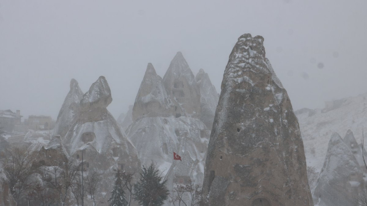Hava sıcaklıklarının mevsim normallerinin altına düştüğü Kapadokya bölgesinde etkili olan fırtına ve sağanak yerini kar yağışına bıraktı. Bölgedeki peribacaları beyaza büründü. Göreme başta olmak üzere Ürgüp, Zelve ve Uçhisar gibi bölgeleri ziyaret eden turistler, kara ilgi gösterdi.