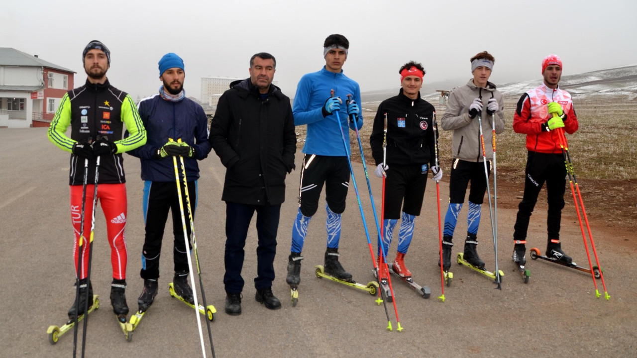 Kentte kar yağmaması nedeniyle asfaltta antrenman yapan sporcular, şampiyonadan dereceyle dönmeyi hedefliyor.