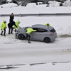 Bölgedeki trafik polisleri, yol güvenliğini sağlamak ve trafiği aksatmamak amacıyla aracı itmeye başladı. Polislerin bu anları vatandaşlar tarafından görüntülendi.