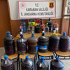 Mahkeme kararı ile şüpheliye ait ev ve depoda arama yapan ekipler ev yapımı 193 litre kırmız şarap, 32 litre beyaz şarap ve 21 litre sahte rakı ele geçirdi.