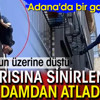 Müzakereci polislerin uzun süre ikna etmeye çalıştığı Ali İ., yağmur suyu giderine tutunarak baş aşağı sarkmaya başladı ve ardından kendini boşluğa bıraktı. Komşusu Ufuk A., Ali İ.'yi tutmak için bahçeye koştu ancak Ali İ., Ufuk A.'nın üzerine düştü. Olay sırasında Ali İ.'nin yakınları sinir krizi geçirerek gözyaşı döktü. Hafif yaralanan Ali İ. ve Ufuk A., sağlık ekiplerinin ilk müdahalesinin ardından ambulansla Seyhan Devlet Hastanesi'ne kaldırıldı.