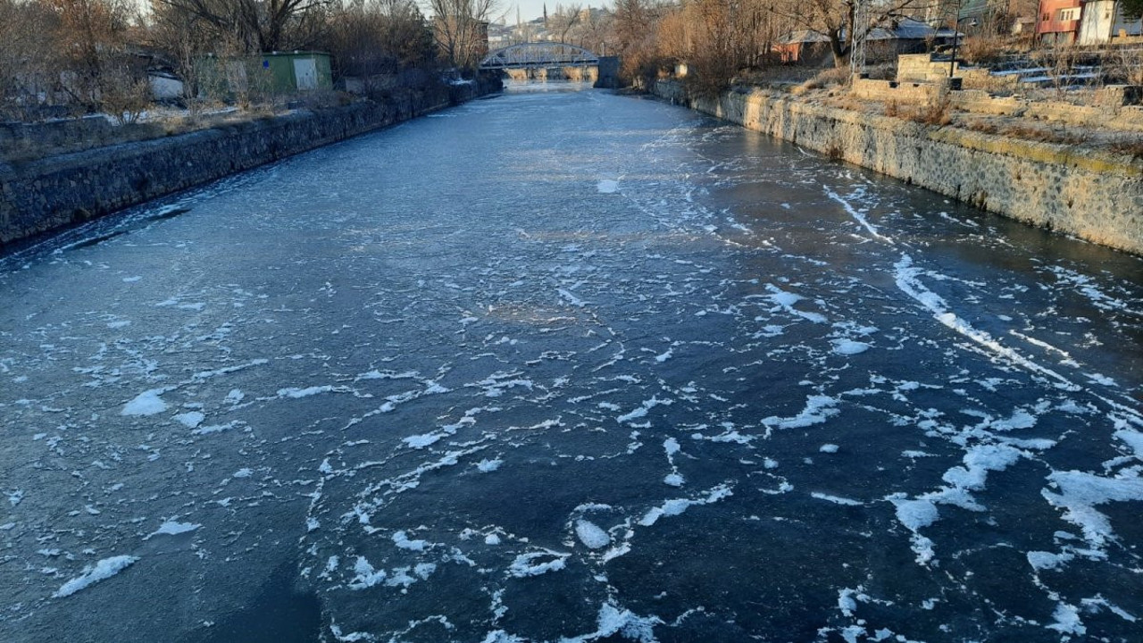 Kars Çayı’nın buz tuttuğunu ifade eden vatandaşlar, “Sabah erken kalktım, Kars Çayı buz tutmuş, artık soğuklar başladı. Üşüyoruz, soğuktur” dediler.