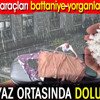 Kars'ı yaz ortasında dolu vurdu! Milyonluk araçları battaniye-yorganla korudular