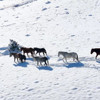 Erzincan'ın Çağlayan beldesinde görülen yılkı atları, kış şartlarının ağırlaşması ile kara yoluna ve yerleşim yerlerine inmeye başladı.