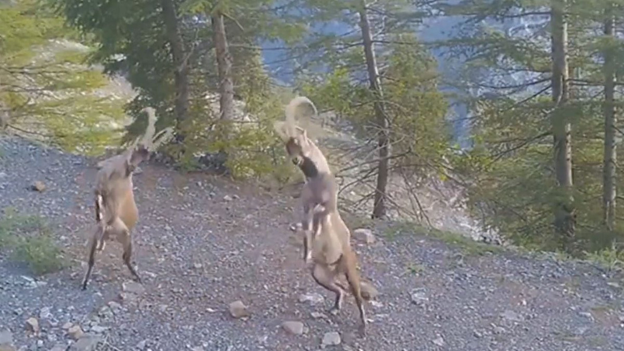 Doğa Koruma ve Milli Parklar Genel Müdürlüğü ekipleri doğadaki yaşamı görüntülemek için yerleştirdikleri fotokapanlarda birbirinden ilginç görüntüleri sosyal medya sayfasına taşıyor. İşte onlardan biride iki genç dağ keçisi kavga ederken, yaşlı keçiler gelince kavga bir anda sonlanıyor.