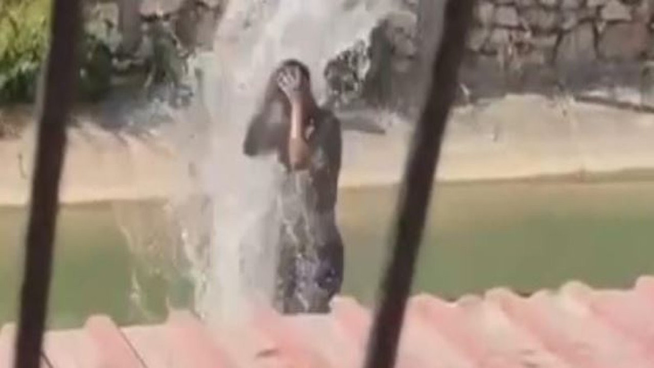Kanala girmeyen vatandaşı kepçe operatörü sulama kanalından kepçesine su alıp üzerine dökerek serinletti. O anlar ise çevredeki bir vatandaşın cep telefonu ile kaydedildi.