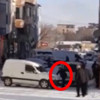 Aracın önüne geçerek durdurmanın mücadelesini veren sürücünün çabasını çevredeki vatandaşlar, cep telefonlarıyla görüntüledi. Kayan aracın otomobiline çarpmasını önlemek isteyen sürücünün çabası sonuç verdi. Sürücünün mücadelesi sonucu iki araçta da hasar oluşmadı.(AA)