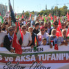 Sivas Caddesi'nde toplanan dernek üyeleri ve vatandaşlar, Filistin bayrakları ve İsrail'i kınayan pankartlarla Cumhuriyet Meydanı'na yürüdü. Aksa Tufanı Operasyonu'nun birinci yıldönümünde, Filistin'deki şiddetin sona ermesi çağrısında bulundular.
