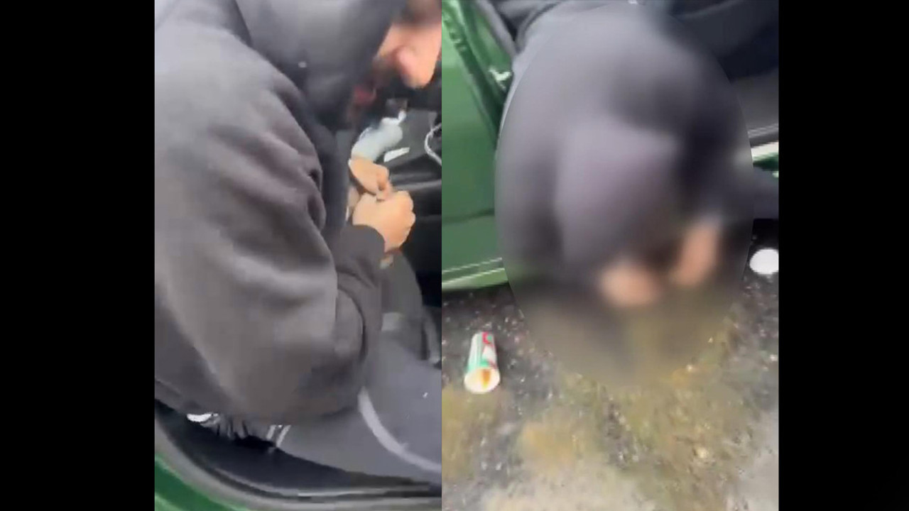 Görüntülerde ise otomobil sürücüsünün elindeki bir maddeyi yutmaya çalıştığı görülüyor.