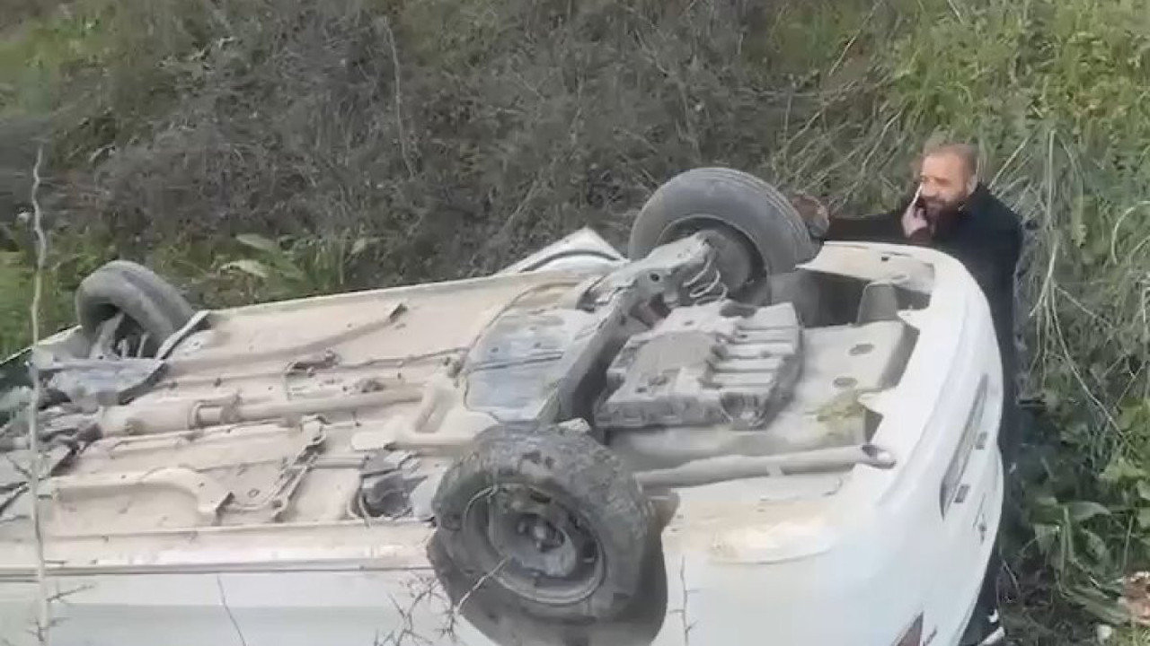 Otomobilin sürücüsü, ters dönen otomobilden yara almadan çıktı. Kendi imkanlarıyla araçtan çıkmayı başaran sürücü ve arkadaşı yakınlarına telefon açtı.