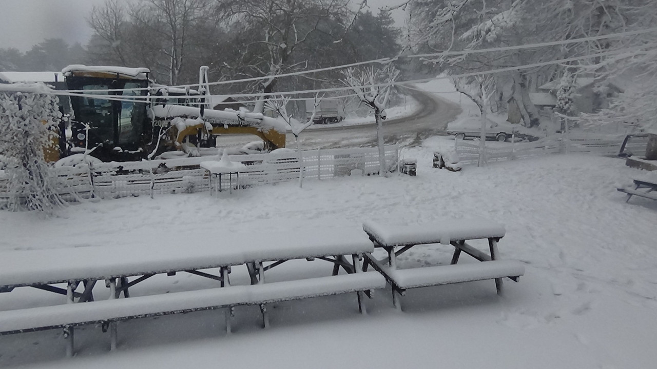 Balıkesir'de yağan karla Kazdağları'nda kar kalınlığı 15 santimetreyi geçerken, Edremit ve Havran ilçelerini Çanakkale'nin Yenice ilçesine bağlayan kara yolunu açık tutmak için ekipler bölgede çalışıyor.