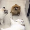 Hayvanların sosyal yaşamları, bazen fazlasıyla komik olabiliyor. Buna örnek olarak, iki kedinin kavga ettiği sırada onları ayırmak isteyen köpeğin kendini ortaya atmasıyla yaşandı. Kavga eden kedilerin arasına girmeye çalışan köpek iki kediden de tokat yiyince geri çekilmek zorunda kaldı. O anları kayda alan kedilerin ve köpeğin sahibi videoyu sosyal medyada paylaşınca kısa sürede viral oldu.