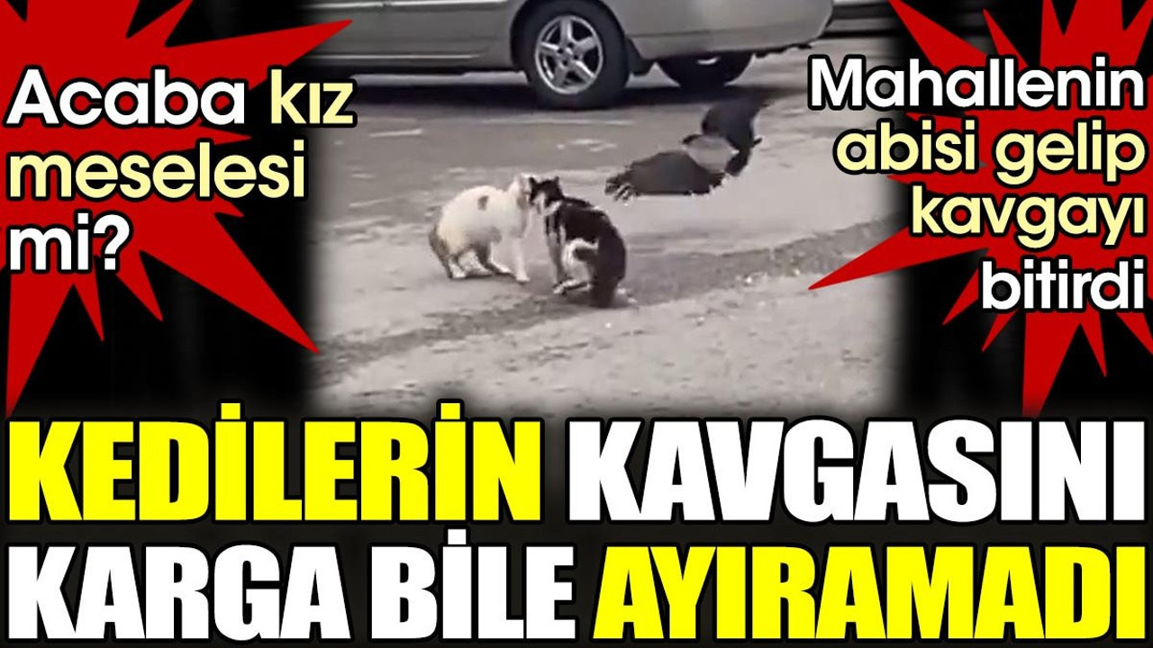 İki sokak kedisi bilinmeyen bir nedenle sokak ortasında kavgaya tutuştu. Birbirine baş değdiren kedileri olayı fark eden bir kavga ayırmak istedi. Karganın kavgalarına müdahil olmasına sinirlenen kediler kargayı kovaladı.