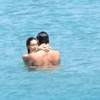 Yüzerken bir süre sohbet eden Kenan İmirzalıoğlu ile Sinem Kobal, daha sonra birbirlerine sarılarak derin aşklarını bir kez daha gözler önüne serdi.