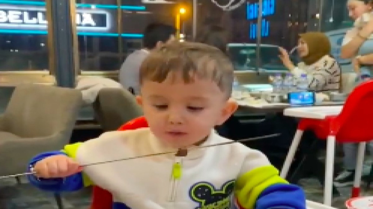 Geleceğin ocakbaşı müdavimi... Küçük bir çocuğun kocaman çöp şişten kendisine dürüm yapıp yediği anlar izleyenleri güldürdü. Video kısa sürede gündem oldu