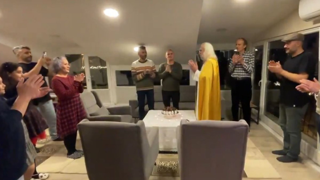 Mezarcı'nın pastayı üflediği sırada yanında bulunanların da "İyi ki doğdun Mesih" diyerek doğum gününü kutladığı görüldü.