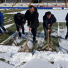 TFF 1.Lig ekiplerinden Bandırmaspor''da karla kaplanan 17 Eylül Stadyumu''nu kulüp yönetimi temizledi.