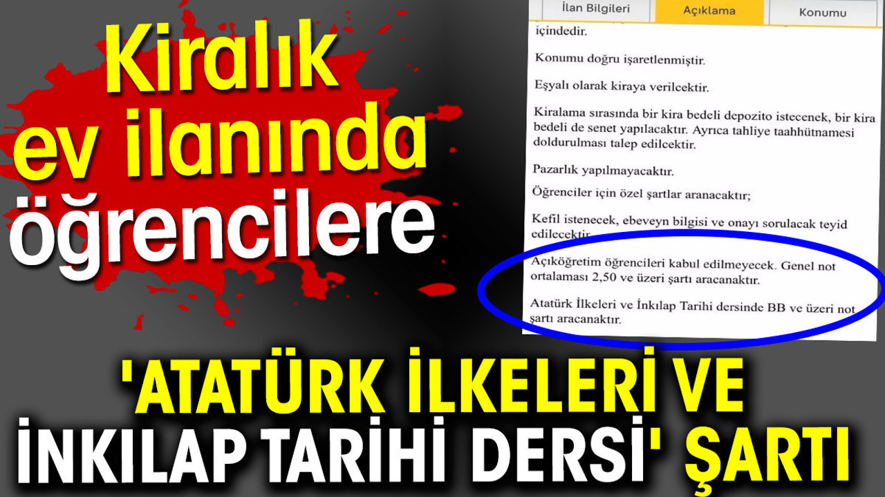 Evi tutmak isteyen öğrencilerden bazı özel şartların istenildiği görüldü. İlanda öğrencinin Atatürk İlkeleri ve İnkılap Tarihi dersinden BB ve üzeri not alması şartı yer alıyor.
