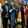 Hisarcıklıoğlu, "Cumhurbaşkanı Sayın Sadır Caparov, TOBB ETÜ fahri doktora unvanını kabul ederek, bizleri onurlandırmıştır. Kendilerine, şahsım, mütevelli heyet başkanlığını yaptığım TOBB-ETÜ ve Türk özel sektörü adına şükranlarımı sunuyorum. Yine Manas Üniversitesi tarafından şahsıma, fahri doktora unvanı takdim edilmişti. Ben de bu unvanı gururla taşıyorum" diye konuştu.