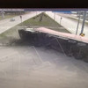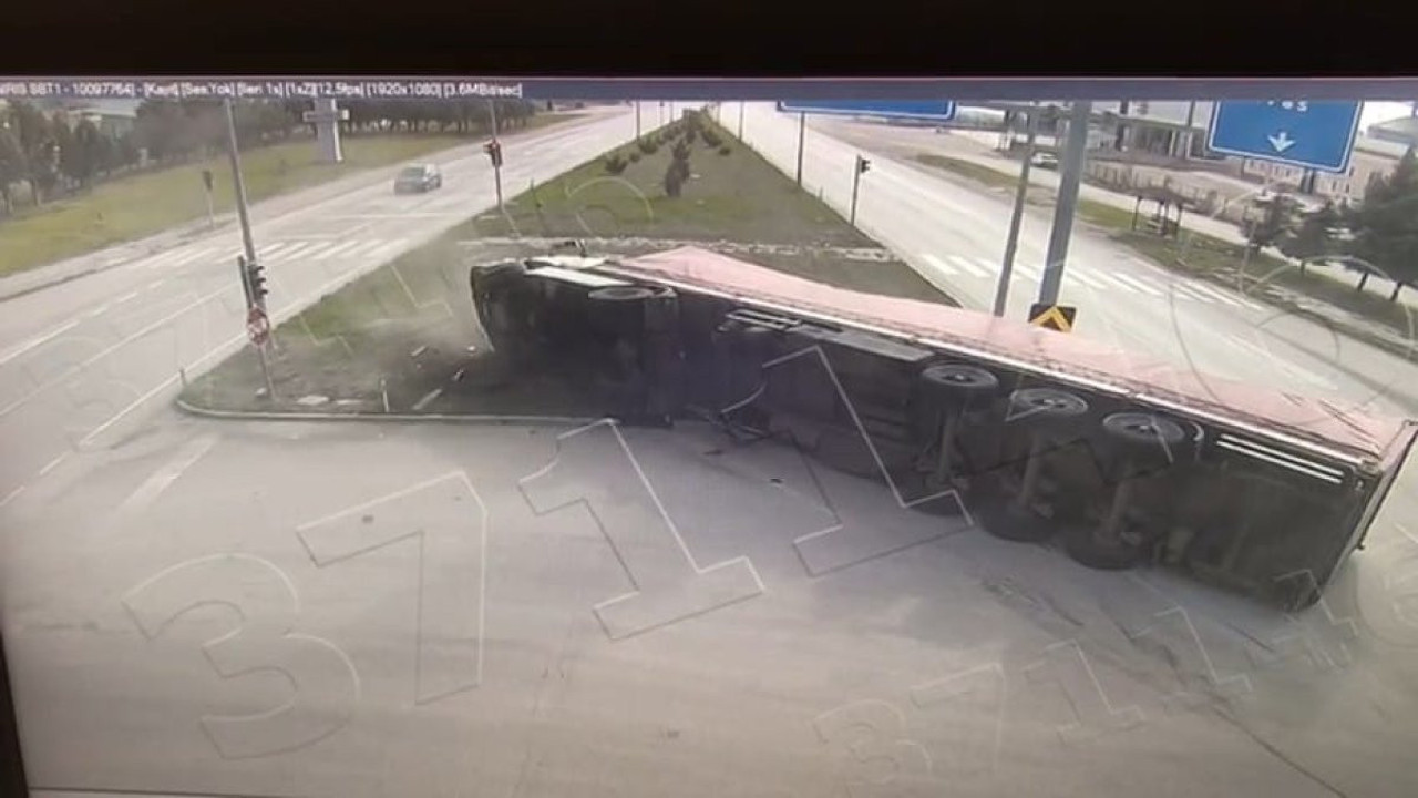 TIR sürücüsü yaralandı, kaza anı güvenlik kamerasına yansıdı.