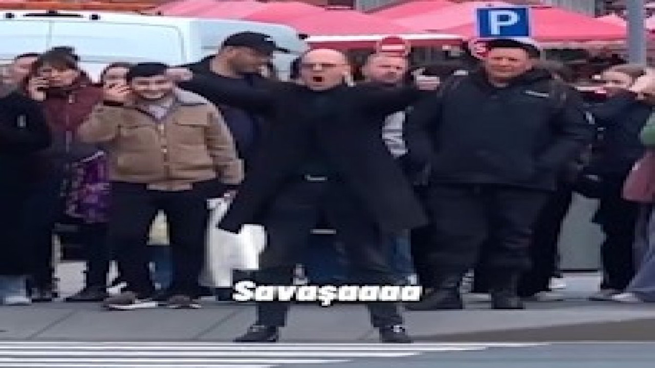 Kırmızı ışıkta araçların durmasını bekleyen yayaların önüne geçen bir adam, bekleyenlerle şakalaşarak taarruza geçtiği anlar, çevredeki vatandaşları güldürdü. Trafiğin yoğun olduğu bir caddede yaya geçidine doğru ilerleyen bir adam, kaldırımda bekleyen yayaların dikkatini çekti. Aniden taarruz pozisyonuna geçerek hayali bir savaş konuşması yapmaya başlayan adam, etrafındakileri kahkahalara boğdu.